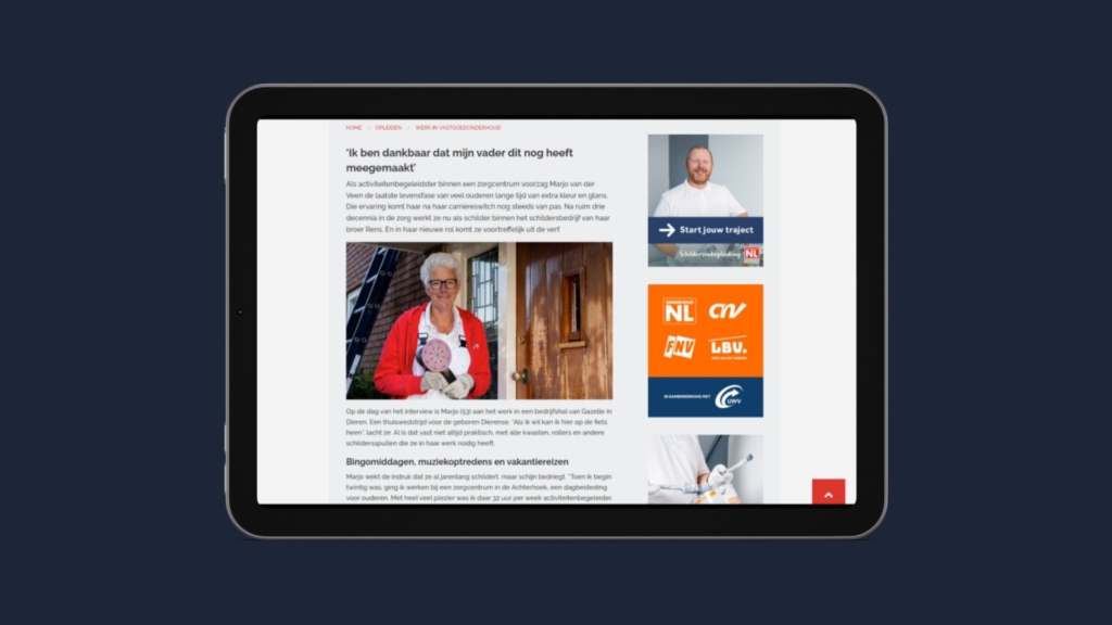 Voor Koninklijke OnderhoudNL, de brancheorganisatie van specialisten in vastgoedonderhoud, schreven we een reeks artikelen over zij-instromers. OnderhoudNL laat daarmee zien hoe dat in de praktijk is, zo’n carrièreswitch. En waar je als zij-instromer tegenaan kan lopen. We spraken vijf mensen met een bijzonder verhaal. En stelden vragen, maar zwegen vooral: gaven ze de ruimte om zelf hun ervaringen te delen. Zoals Marjo, die na dertig jaar in de zorg uitstekend uit de verf komt bij het schildersbedrijf van haar broer. En Chardley, een energieke dertiger, sprak honderduit over zijn carrièreswitch: van de fastfoodkeuken naar het schildersvak.
