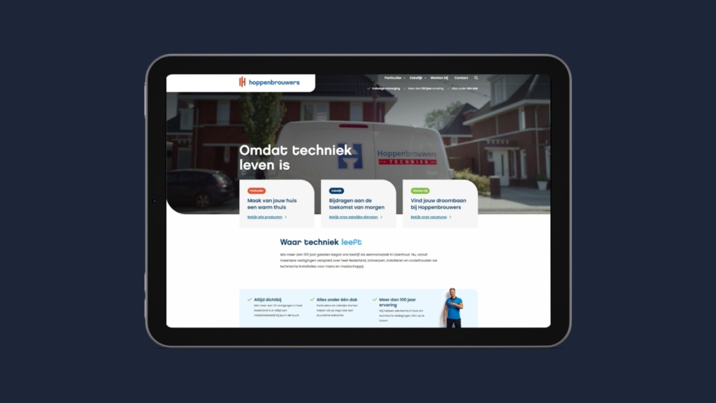 Hoppenbrouwers Techniek werkt al 100 jaar vol passie en vanuit specialisme aan bijzondere projecten. Wij spraken inmiddels tientallen projectmanagers én opdrachtgevers van de allround technisch dienstverlener, voor projectverhalen en referenties op de website. Over onderwerpen als werktuigbouwkundige- en elektrotechnische installaties, sprinklers, beveiliging, automatisering en duurzame energie. Lekker op de inhoud, want dat kun je wel aan ons overlaten. En altijd met een persoonlijk tintje. Want projectverhalen gaan toch voor een belangrijk deel ook over mensen, die trots zijn op hun werk. Samen met de communicatieprofessionals bij Hoppenbrouwers zetten we ze graag in de spotlights.
